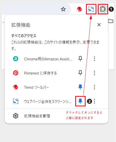❶ 拡張機能のアイコンをクリックする。